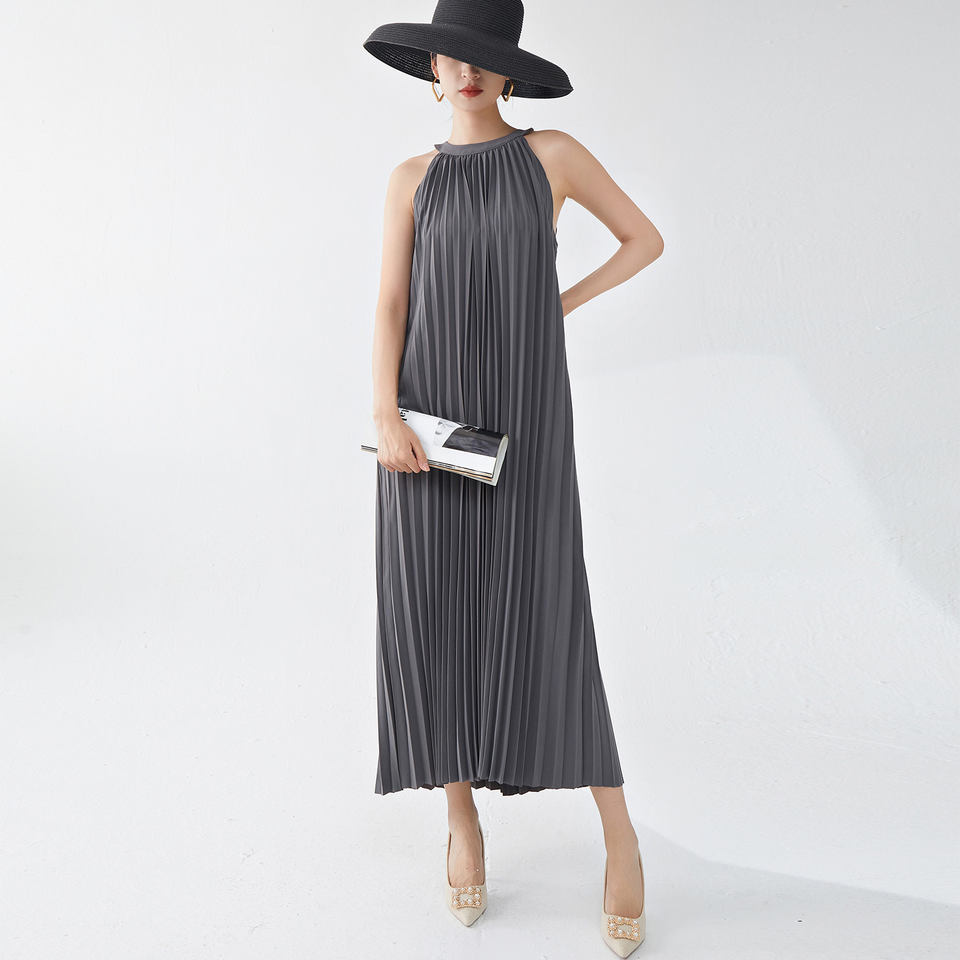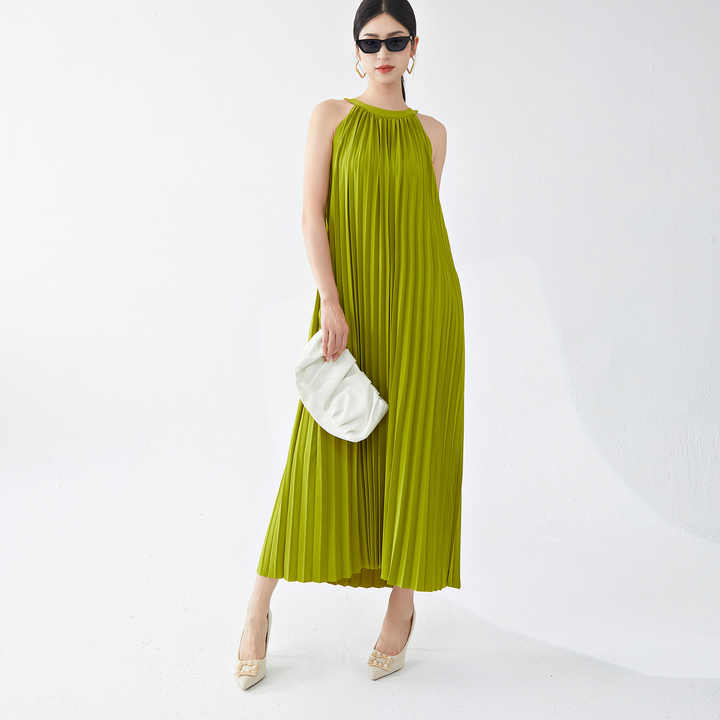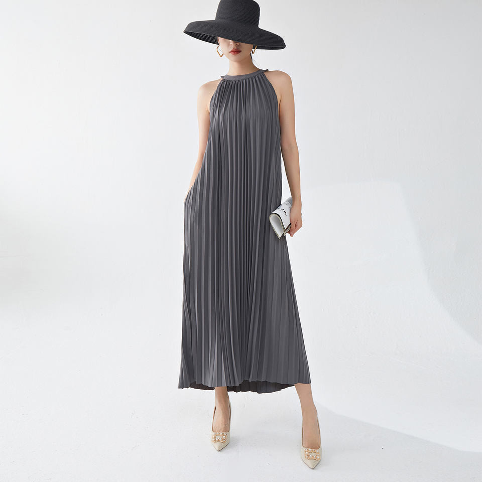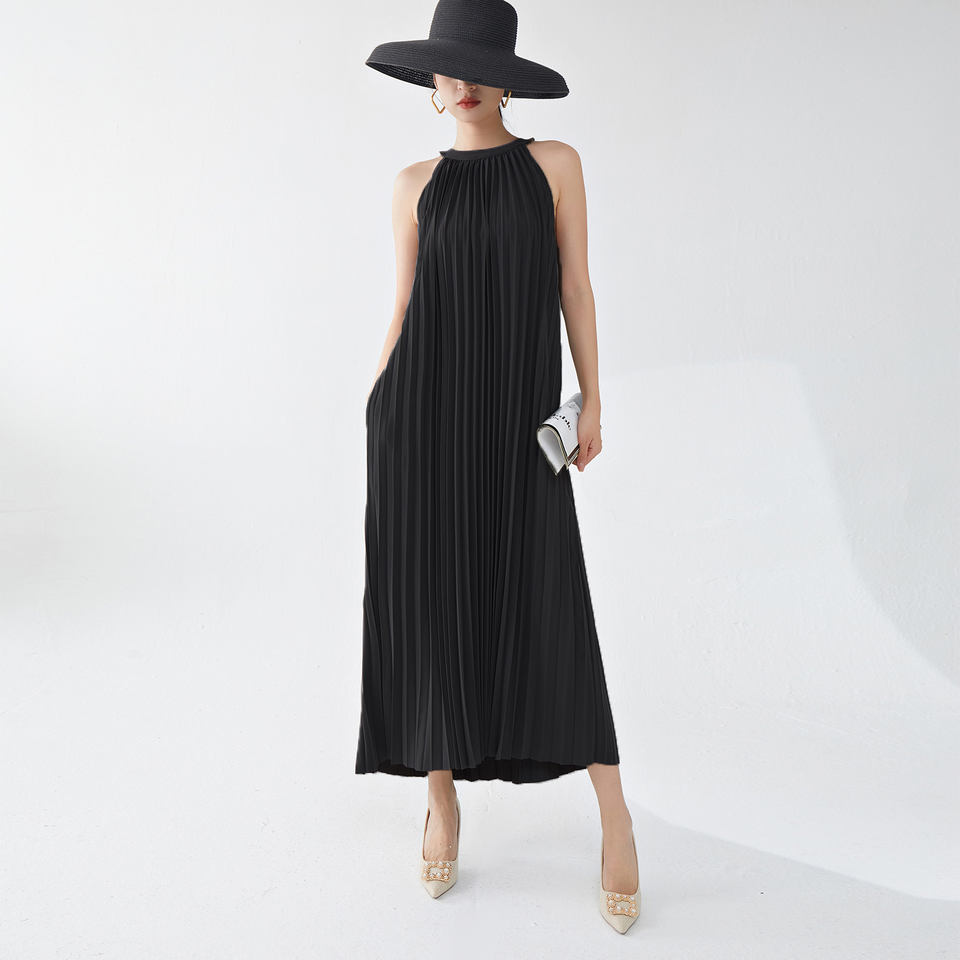 Cowl Neck Suspender Midi Dress Women's High-end Loose Plus Size Holiday Elegant Pleated Woven Custom