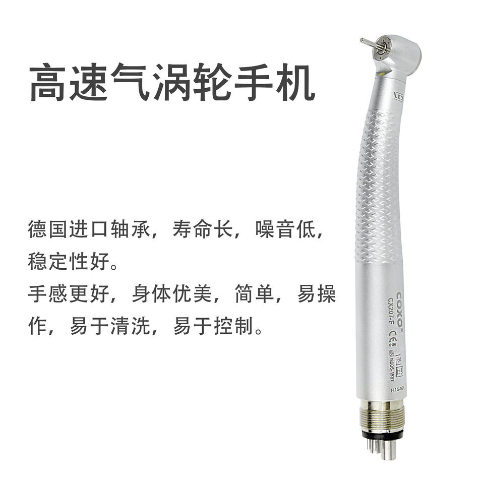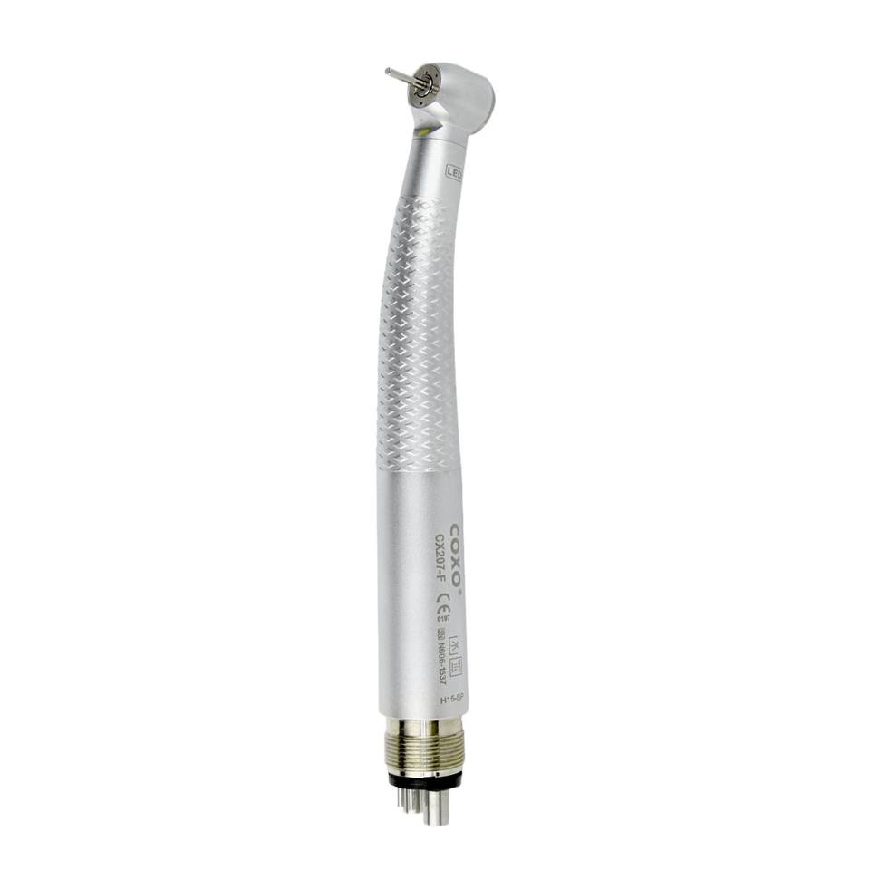 หัวกรอฟัน Coxo รุ่น CX207 F ความเร็วสูง พร้อมไฟ LED สีเงิน ผลิตจากโลหะ ได้รับการรับรองมาตรฐาน CE