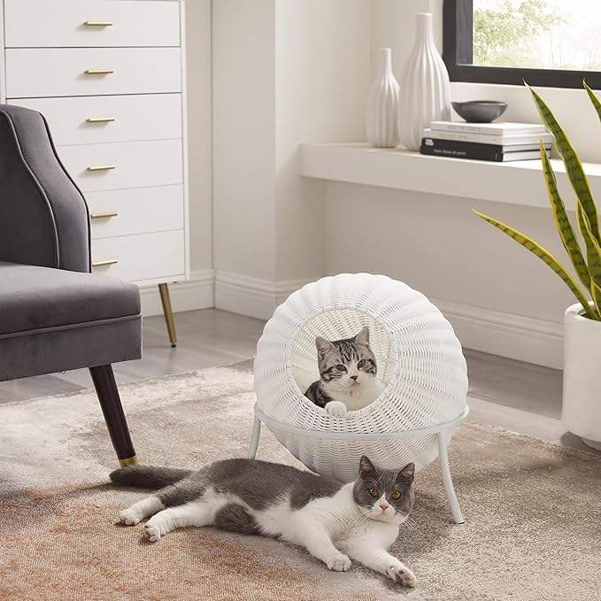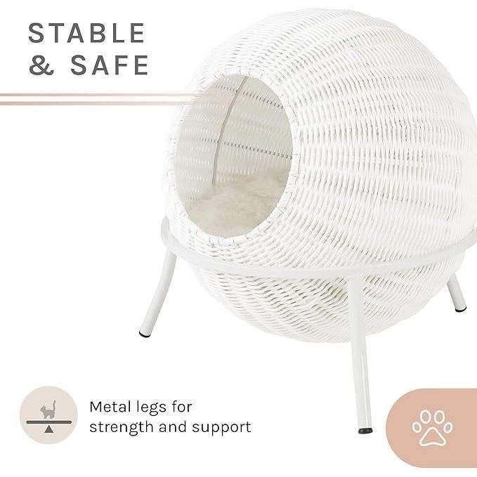 คอนโดแมวหวาย19.5สบายพร้อมเบาะยกระดับเตียงแมวในร่มดีไซน์สีขาวสบาย