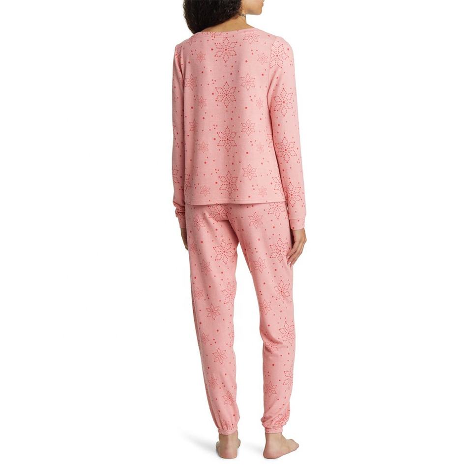 ชุดนอนผู้หญิง 2 ชิ้น ผ้าเนื้อนุ่ม สวมใส่สบายทุกฤดู เสื้อแขนยาว กระโปรงเอวยางยืด ลายพิมพ์ ผ้าถักเนื้อนุ่ม