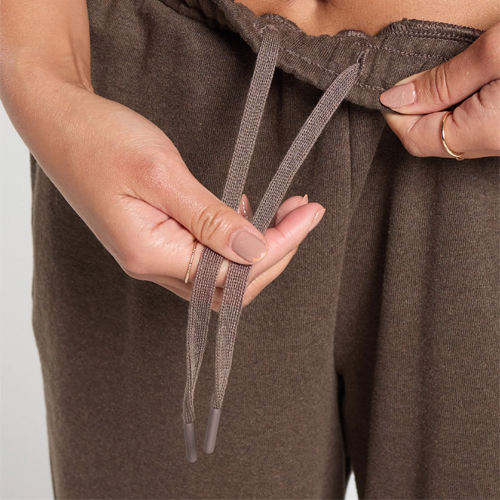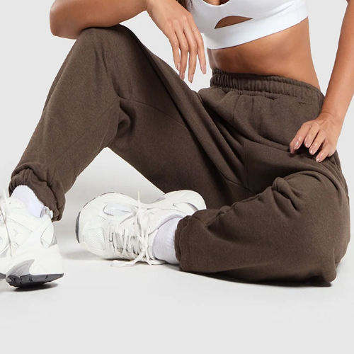 กางเกงวอร์มผ้าฟลีซกันยับสีน้ำตาลนุ่มสบายสำหรับผู้หญิงและผู้ชายไซส์พลัส เหมาะสำหรับวันพักผ่อนในฤดูหนาว เอวยางยืด ผ้าฝ้าย 100%