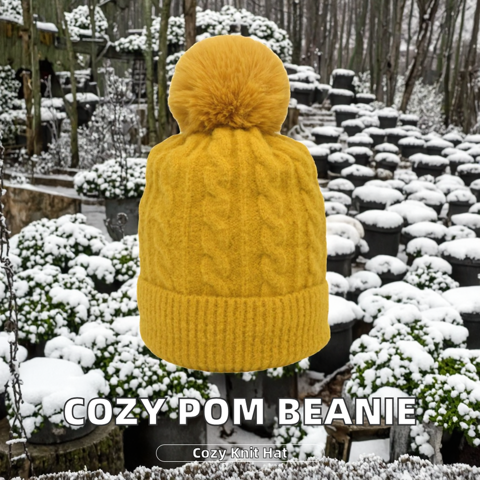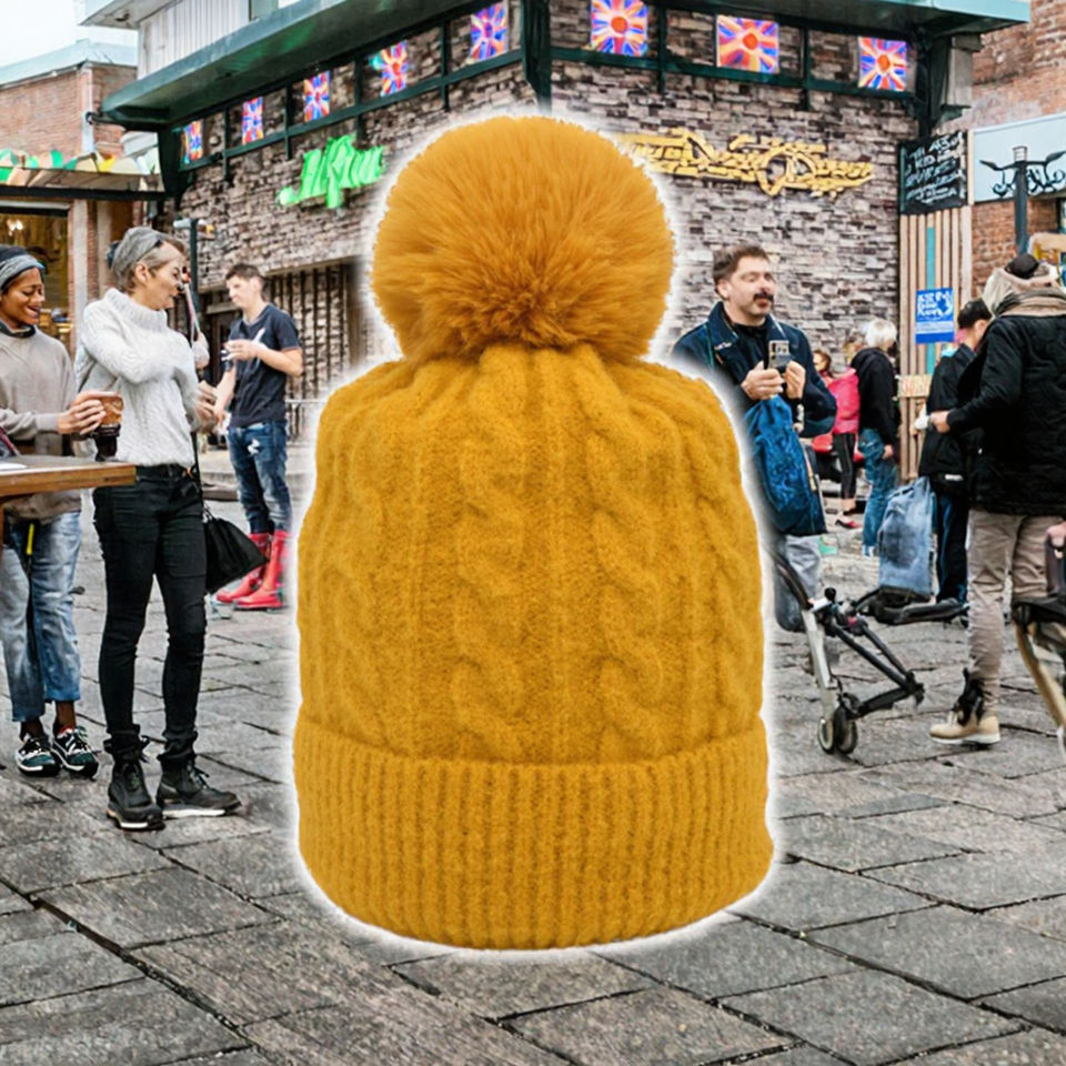 หมวกไหมพรมปอมปอมปอมแบบมีสายถักแบบสวมสบายหมวกสำหรับฤดูหนาวใส่ได้ทั้งชายและหญิงสำหรับเดินทาง