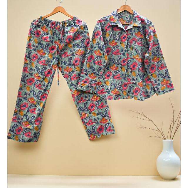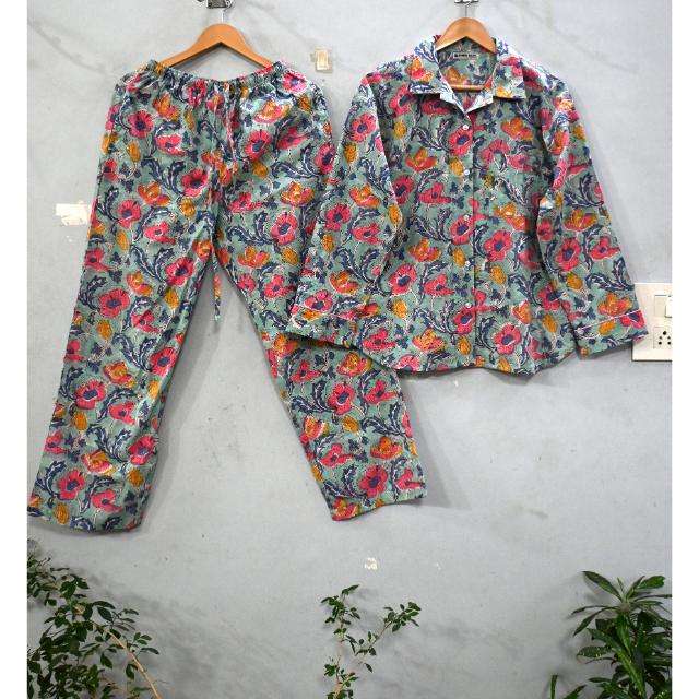 ชุดนอนผ้าฝ้ายพิมพ์ลายดอกไม้แสนสบายสำหรับผู้หญิงชุดนอนสไตล์อินเดียชุดชุดนอนชุดนอนผ้านุ่มระบายอากาศได้ดีเหมาะกับการนอนหลับ