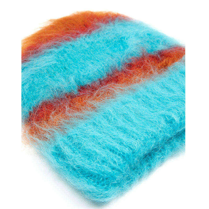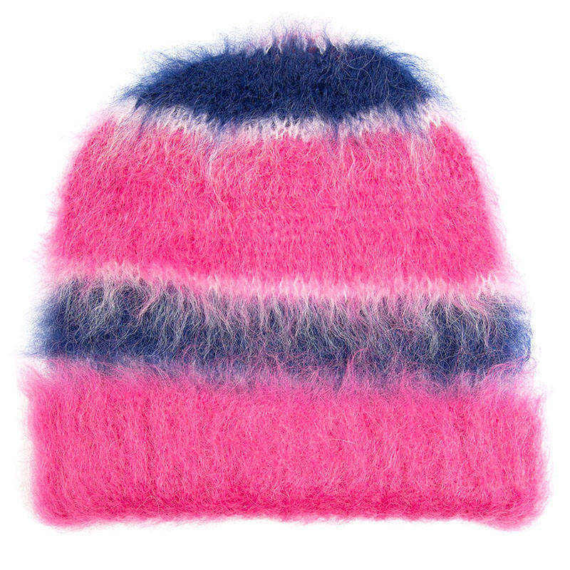 Cozy Furry Knit Striped Colorful Fluffy mohair Warm Winter Beanie for Beach Business & Fishing Use Unisex Adult Hat OEM/ODM