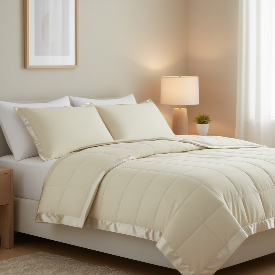 Cozy Lightweight Down Alternative Bed Blanket With Satin Trim Quilted Polyester All Season Rectangle Solid Color Machine