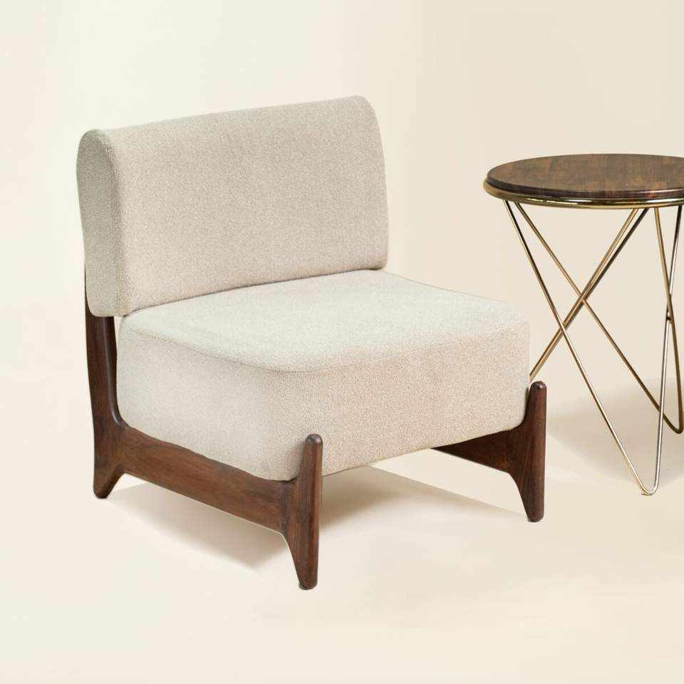 เก้าอี้เลานจ์ที่สะดวกสบายด้วยผ้านุ่มและการออกแบบขาไม้ธรรมชาติสัมผัสที่สมบูรณ์แบบสำหรับการอ่านหรือพักผ่อน