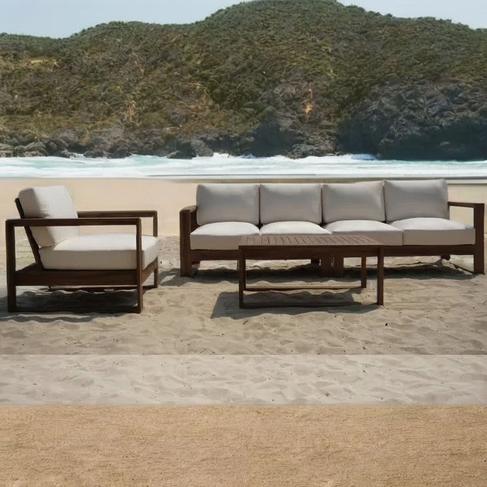 ชุดโซฟาแขนขวาทำจากไม้สักโมดูลาร์แบบโมดูลสำหรับลานกลางแจ้งสวนริมสระน้ำชุดโซฟาในสวน