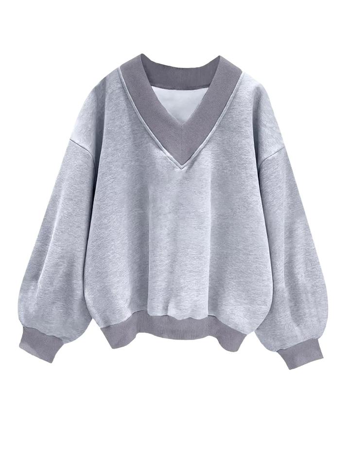 เสื้อสเวตเชิ้ตคอวีทรงโอเวอร์ไซส์สำหรับผู้หญิง สวมใส่สบาย แขนยาว ผ้าฝ้ายนุ่ม ทรงหลวม ใส่ได้ทุกวัน ราคาถูก รับผลิตตามแบบ OEM