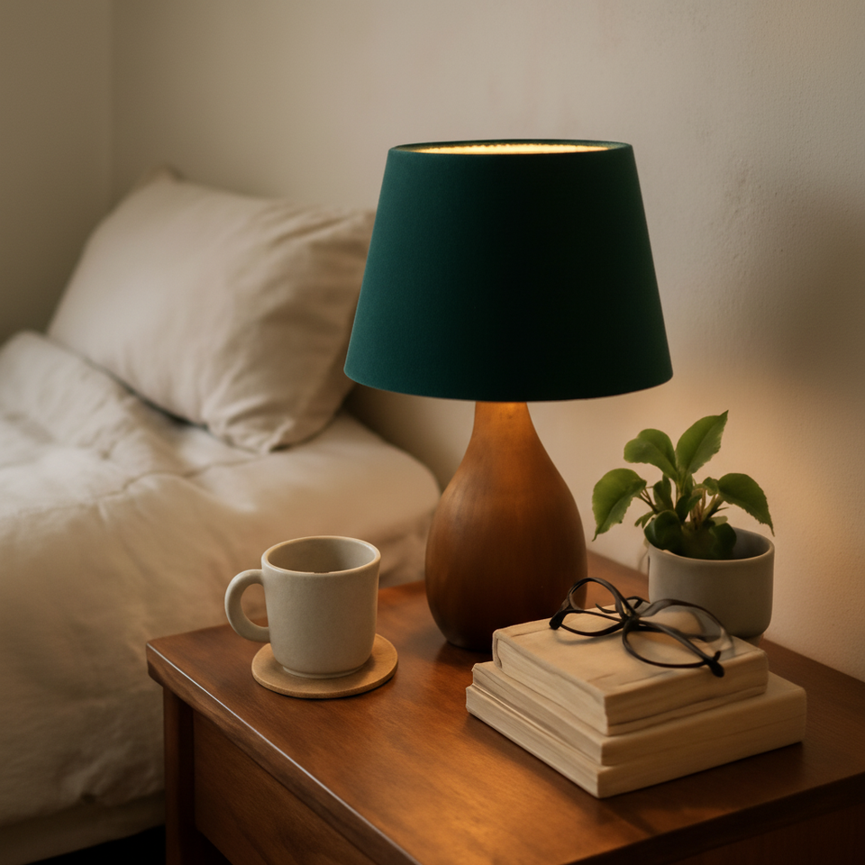 สะดวกสบายข้างเตียงของคุณด้วยไม้ที่อบอุ่นและร่มเงาสีเขียวเข้มมีจำหน่ายในราคาขายส่ง