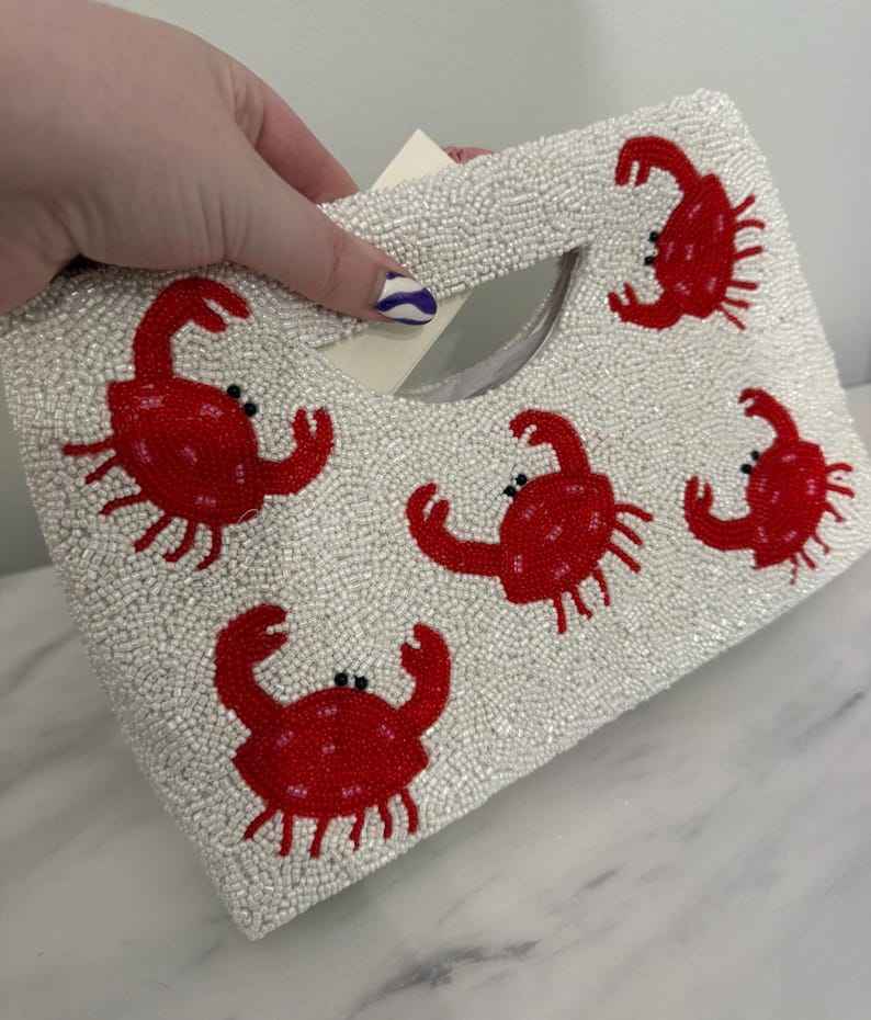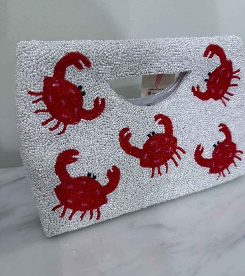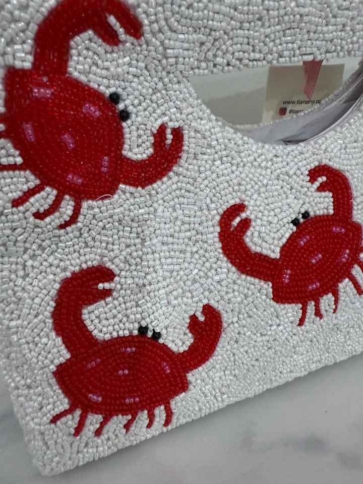 Crab Hand Beaded Clutch Bag Beaded Bag Beaded Crossbody Beaded Shoulder BagTropical Summer Coastal Beaded Bag Nantucket