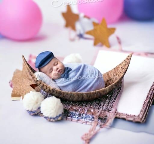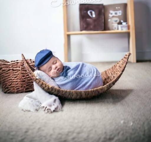ตะกร้าไม้ไผ่รูปเรือสำหรับถ่ายภาพเด็กทารก พร็อพถ่ายภาพเด็กแรกเกิด