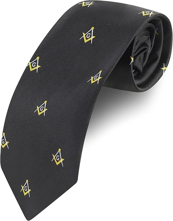 เนคไทไหมถักลายสี่เหลี่ยมสีขาวและเข็มทิศสีดำ/ขาว สำหรับช่างฝีมือชาวเมสัน