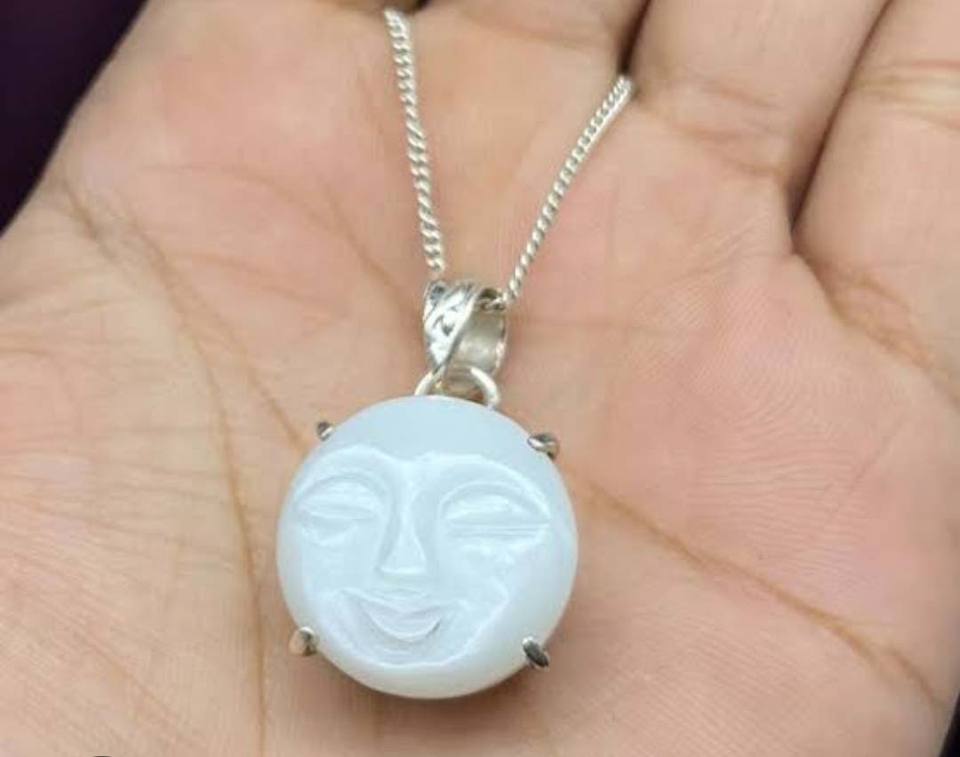 ทำด้วยมือสีเงิน925พระจันทร์เต็มดวงรูปร่างใบหน้า15มม. สีรุ้งจี้มูนสโตนชุดฝาเป็นของขวัญวันครบรอบสำหรับเครื่องประดับของเธอ