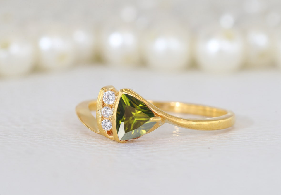 Crafted By Hand Standard Silver Gold Plated Triangle Shape Fine Ring Turquoise Gem 8MM Bezel Set For Anniversary Gift For Her
