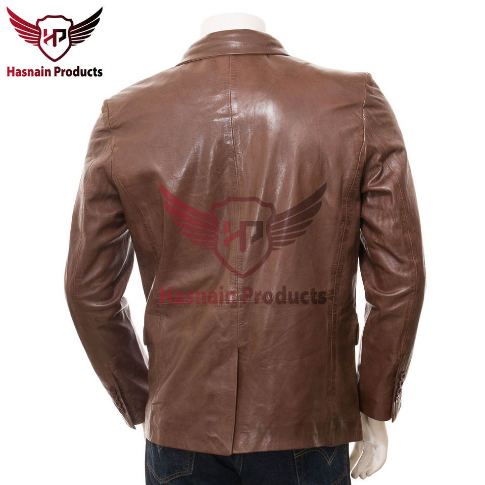 ความสง่างามที่ประดิษฐ์ขึ้น: เสื้อเบลเซอร์หนังสีน้ําตาลสําหรับผู้ชายที่ปรับแต่งได้ - ความซับซ้อนที่ปรับแต่งตามทุกโอกาส
