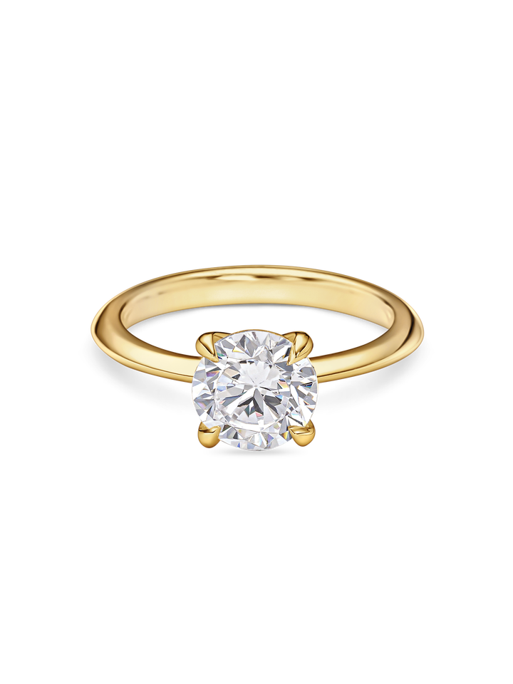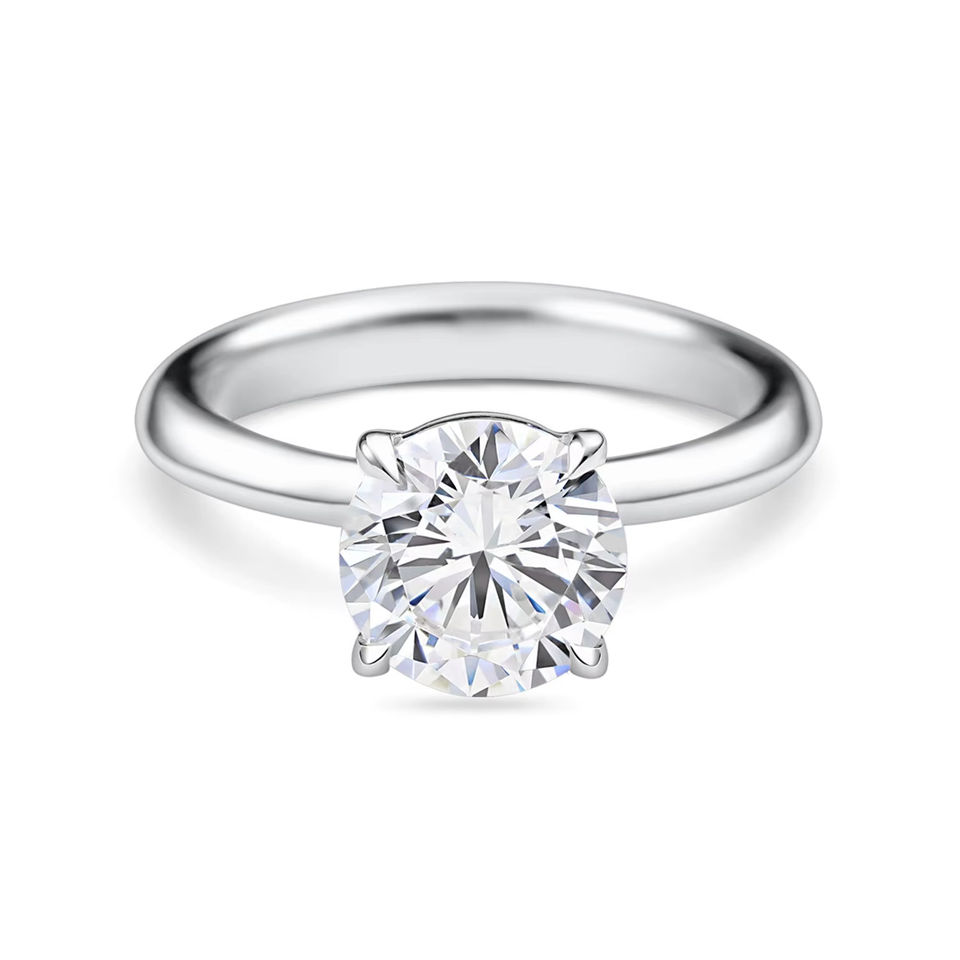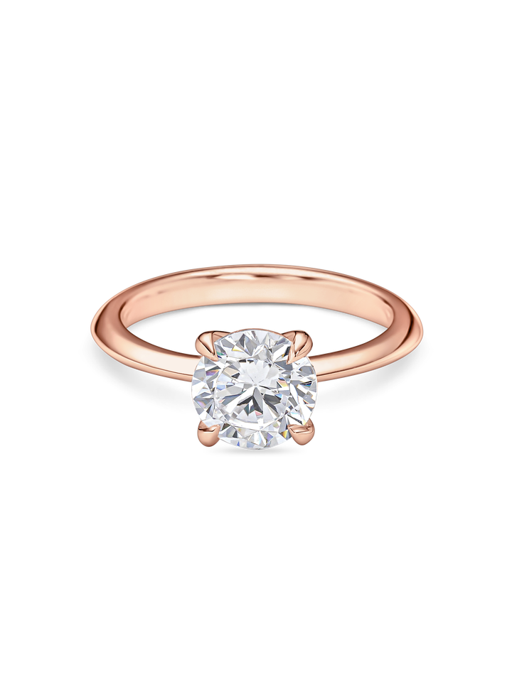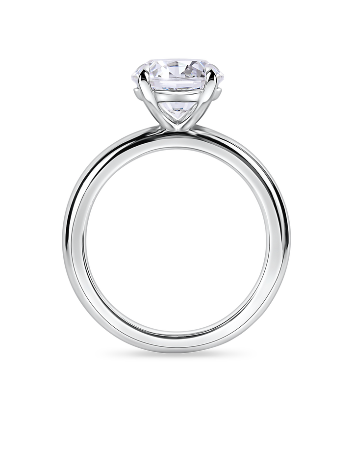 แหวนหมั้นเพชรทรงกลมเม็ดเดี่ยวขนาด 1 กะรัตขึ้นไป ผลิตด้วยเพชรที่เพาะเลี้ยงในห้องปฏิบัติการ พร้อมขอบแหวนแบบคมกริบ | ทองคำขาว 18K สีเหลือง ขาว และสีโรสโกลด์ พร้อมแพลตตินัม