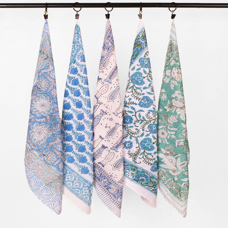 ผ้าพันคอคราฟท์จาไพร ผ้าฝ้ายออร์แกนิคพิมพ์ลายดอกไม้ด้วยมือ เป็นมิตรต่อสิ่งแวดล้อม ระบายอากาศได้ดี ใช้ได้หลากหลาย สำหรับผู้ชายและผู้หญิง