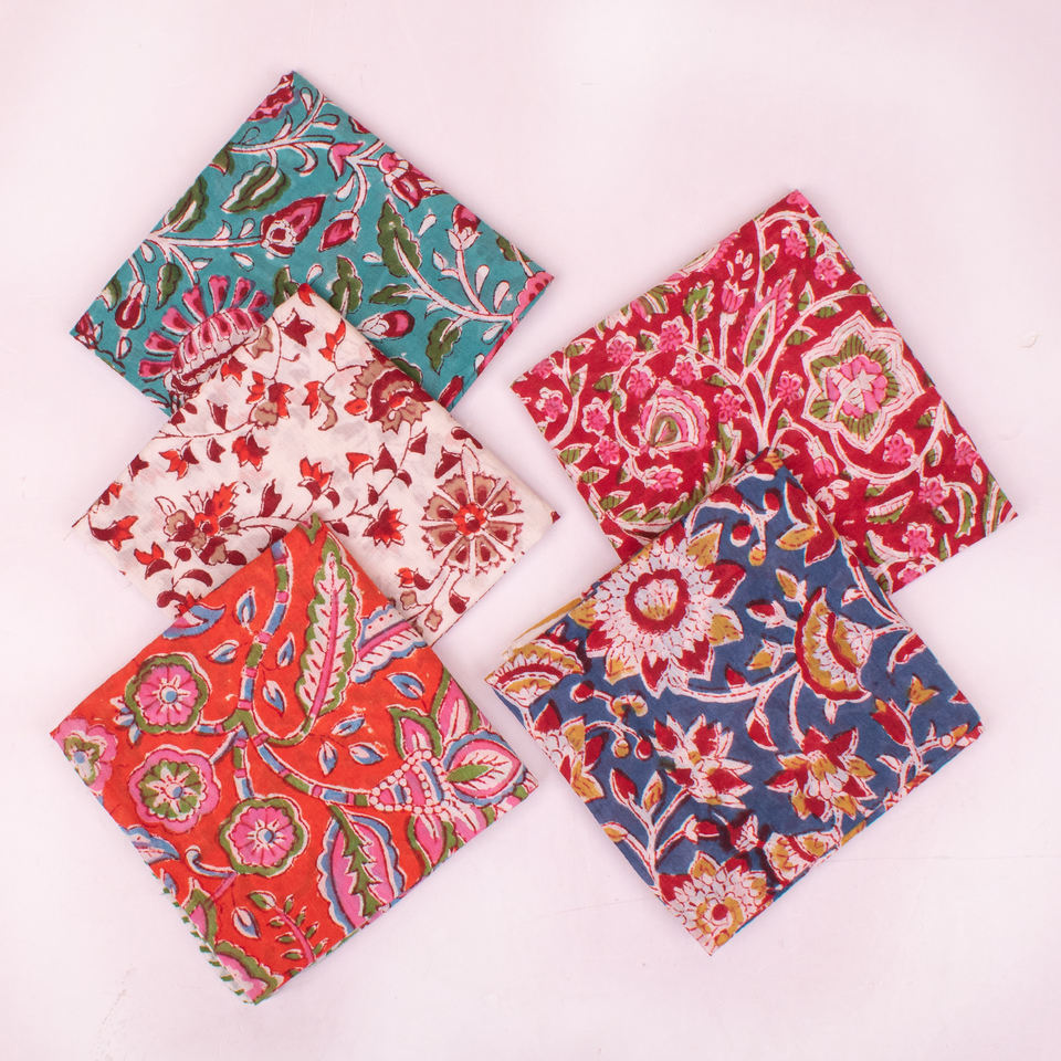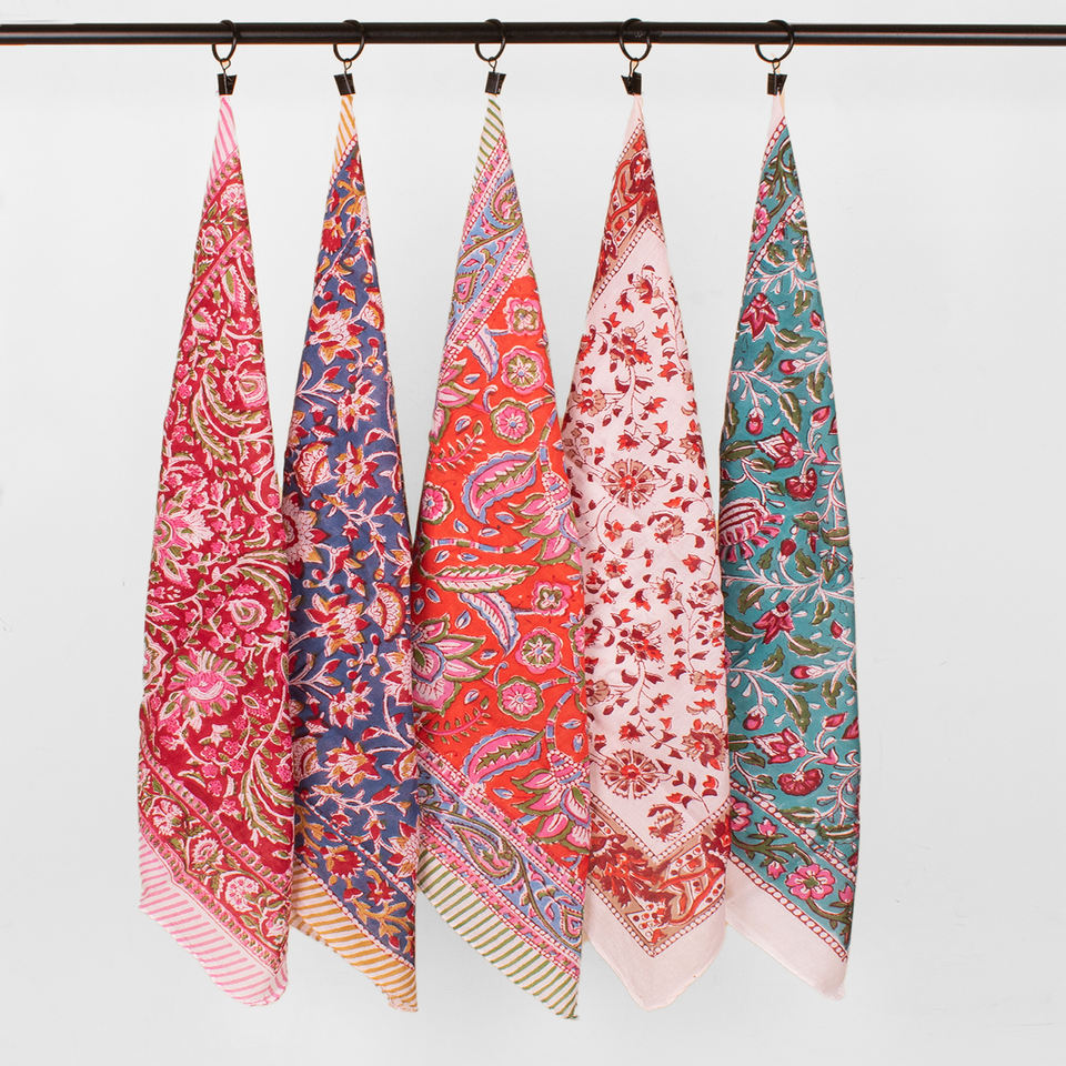 ผ้าพันคอคราฟท์จาไพร ผ้าฝ้ายรักษ์โลก พิมพ์ลายดอกไม้ด้วยมือ ระบายอากาศได้ดี ขนาด 21x21 นิ้ว สำหรับผู้ชายและผู้หญิง
