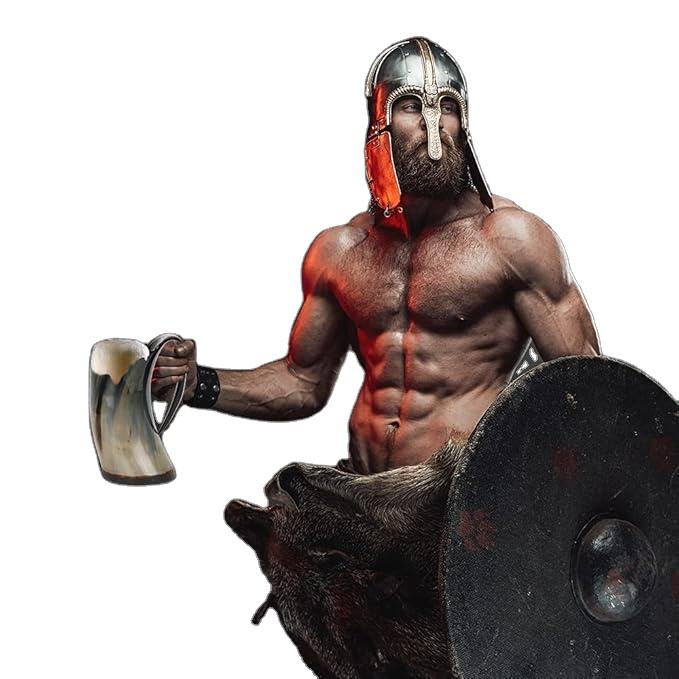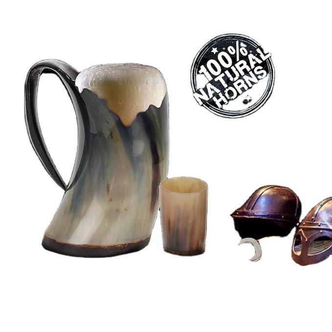 Crafshub แก้วมักลายวัวฮอร์นทำมือ12นิ้วเป็นมิตรกับสิ่งแวดล้อมสไตล์ยุคกลางแท้เคลือบเงาธรรมชาติสำหรับเครื่องดื่มร้อน/เย็นโปรโมชั่น
