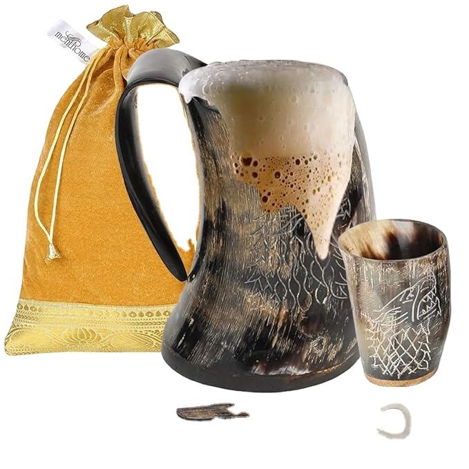 Craftshub แก้วมักลายวัวฮอร์นทำมือ12นิ้วเป็นมิตรกับสิ่งแวดล้อมสไตล์ยุคกลางแท้เครื่องดื่มร้อน/เย็น