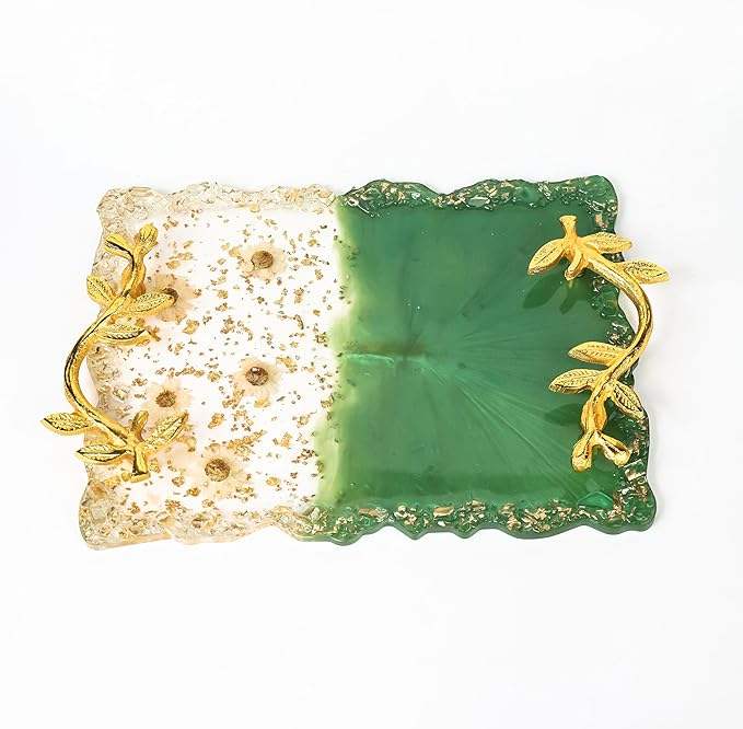 ถาดเสิร์ฟเค้กตกแต่งด้วยมือทำจากโลหะเคลือบทองสำหรับใช้ในบ้านถาดอะคริลิคเรซิ่นกันน้ำได้