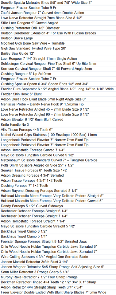 ชุดเครื่องมือผ่าตัดเปิดกะโหลกศีรษะ
