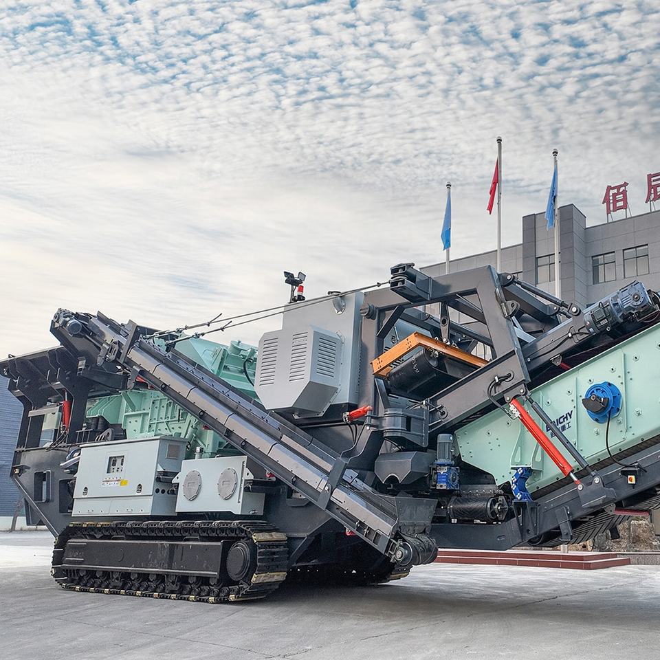 โรงงานบดแบบติดตั้งบนรถตีนตะขาบสำหรับการรีไซเคิลของเสียจากการก่อสร้าง การผลิตคอนกรีตและหินรวมอย่างมีประสิทธิภาพ