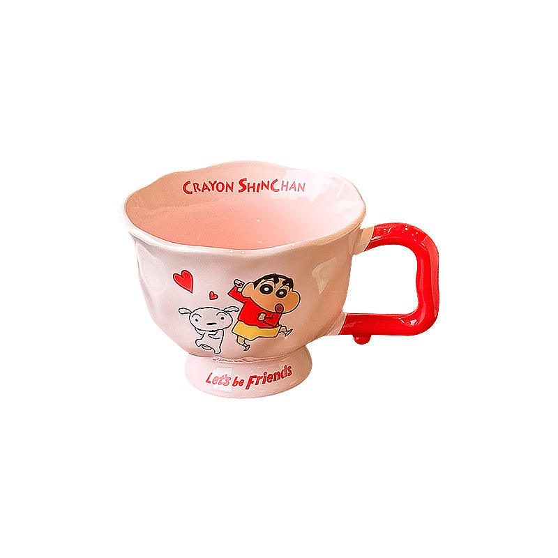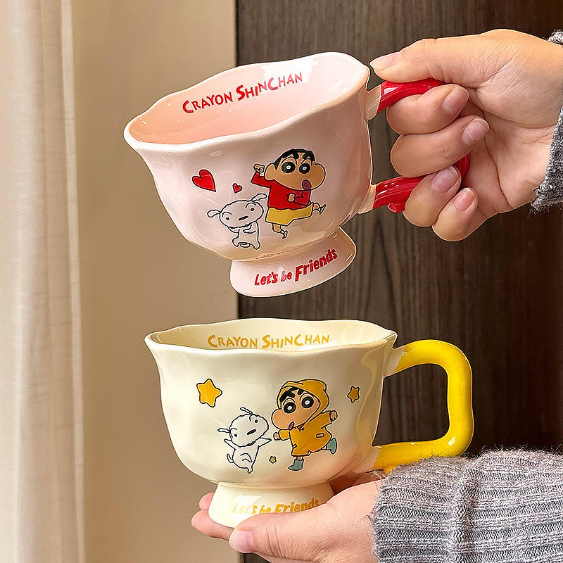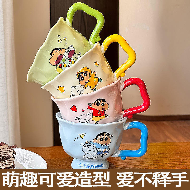 แก้วเซรามิคลายการ์ตูนเครยอนชินจังพร้อมหูจับ สีชมพู ฟ้า เขียว เหลือง แก้วเดี่ยวสำหรับเด็กและคู่รัก