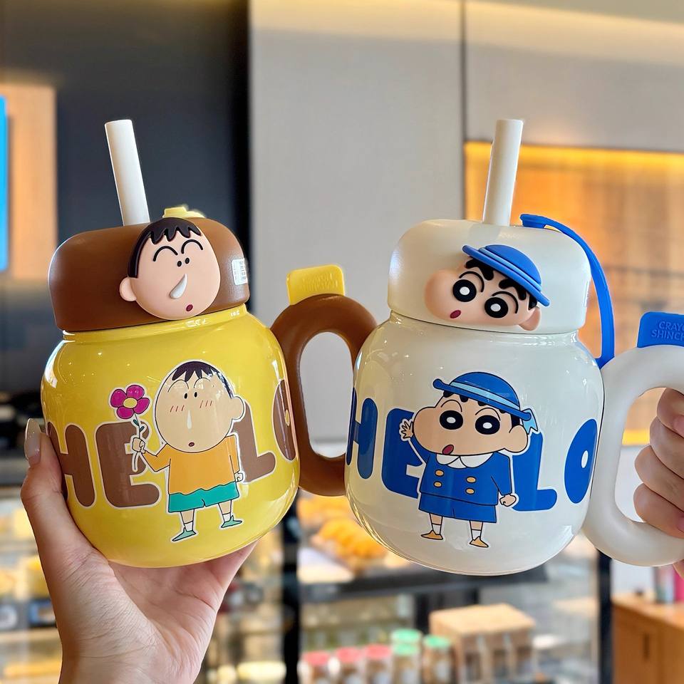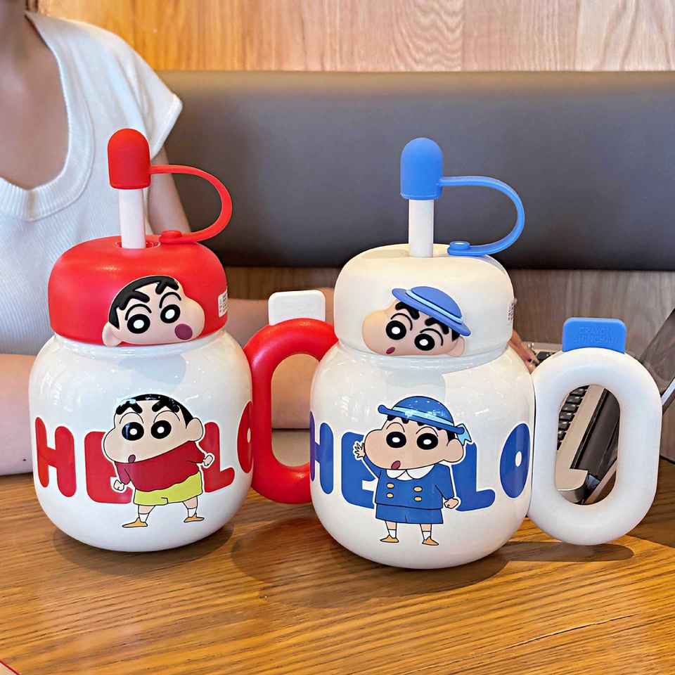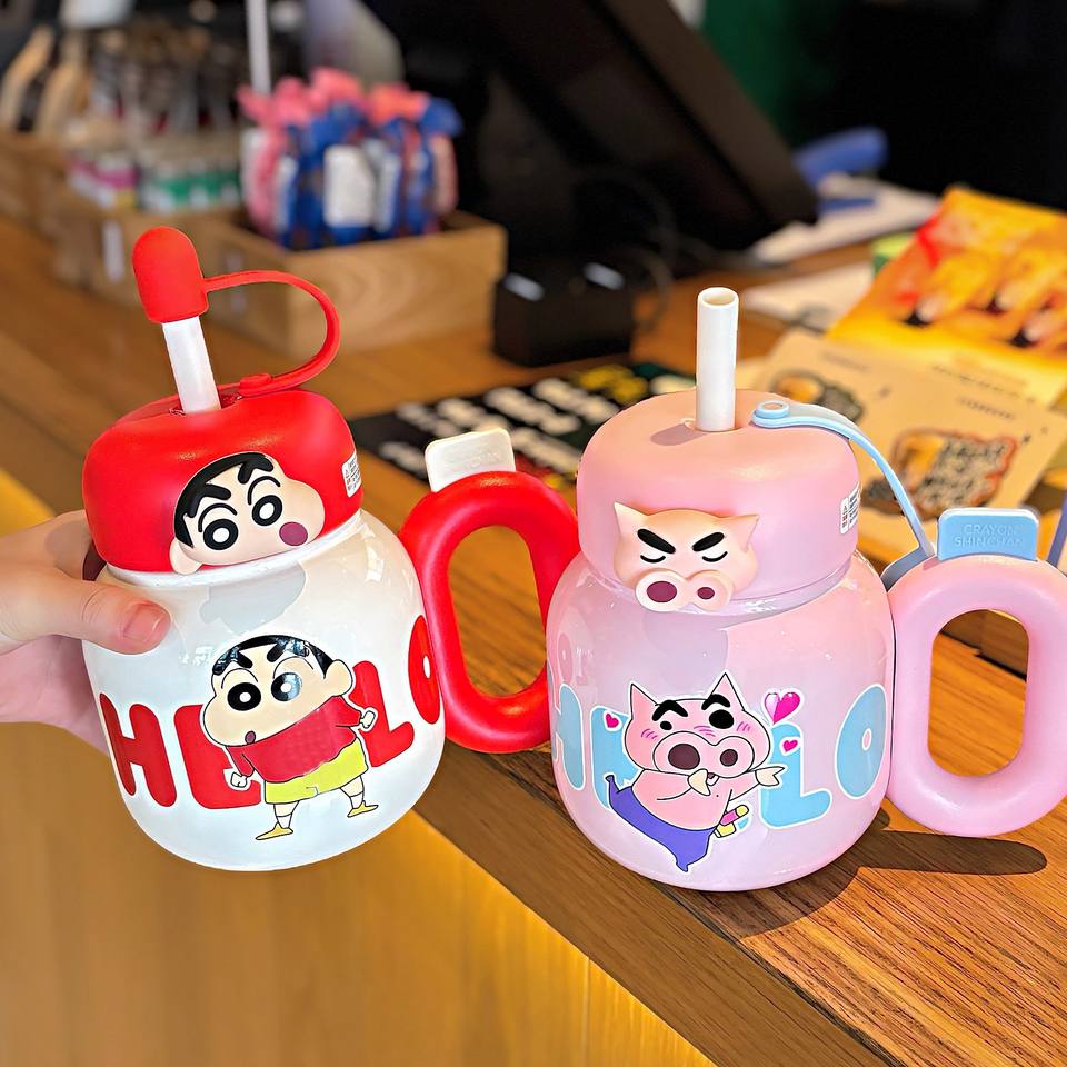 แก้วน้ำเก็บอุณหภูมิลายเครยอนชินจัง สแตนเลส 316 ทรงใหญ่พร้อมหูจับ สำหรับเครื่องดื่มร้อนและเย็น ของขวัญสำหรับการเดินทาง