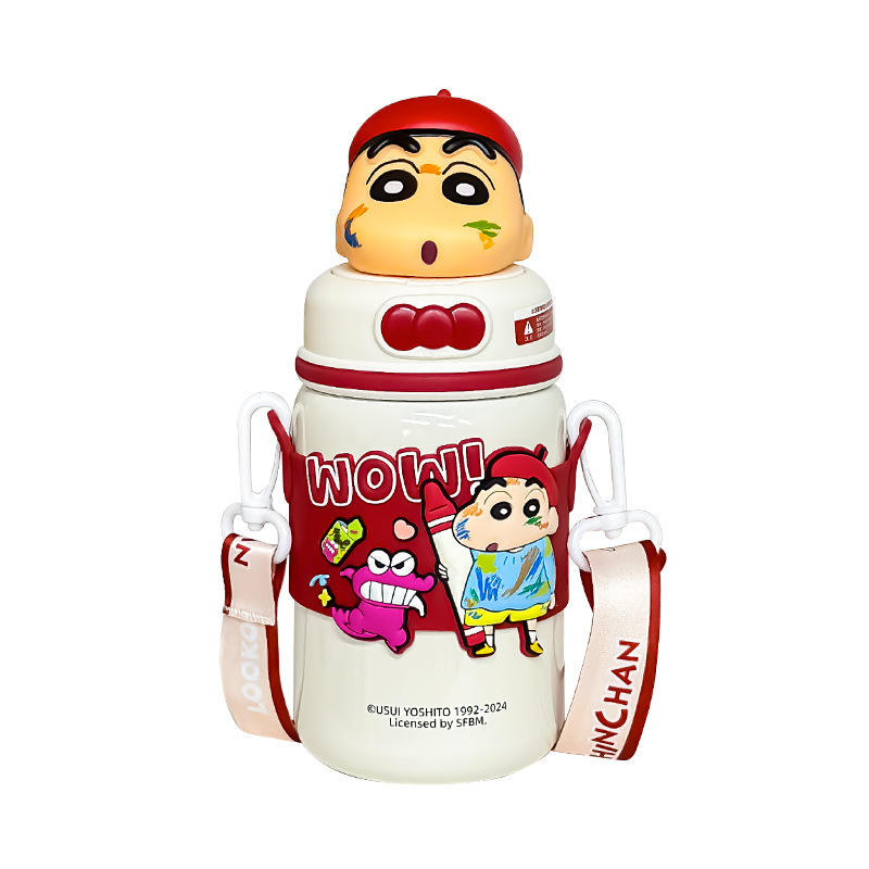 ขวดน้ำเก็บความร้อนลายเครยอนชินจัง 500 มล. พร้อมหลอดดูดสำหรับเด็ก ของขวัญฤดูร้อนปี 2024