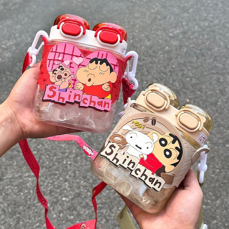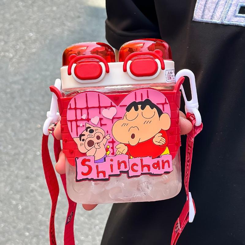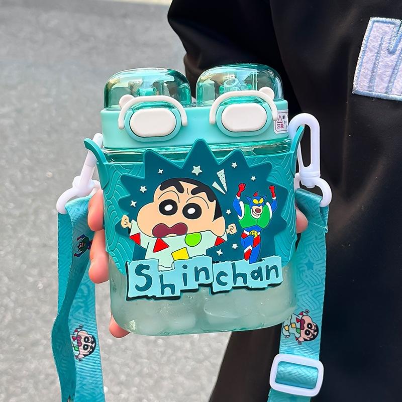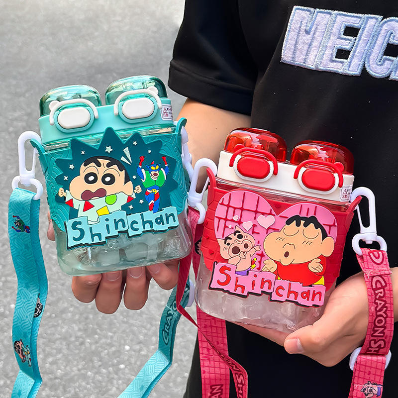 ขวดน้ำเด็กเครยอนชินจัง 500 มล. แบบพกพาพร้อมสายสะพายสำหรับใช้กลางแจ้ง