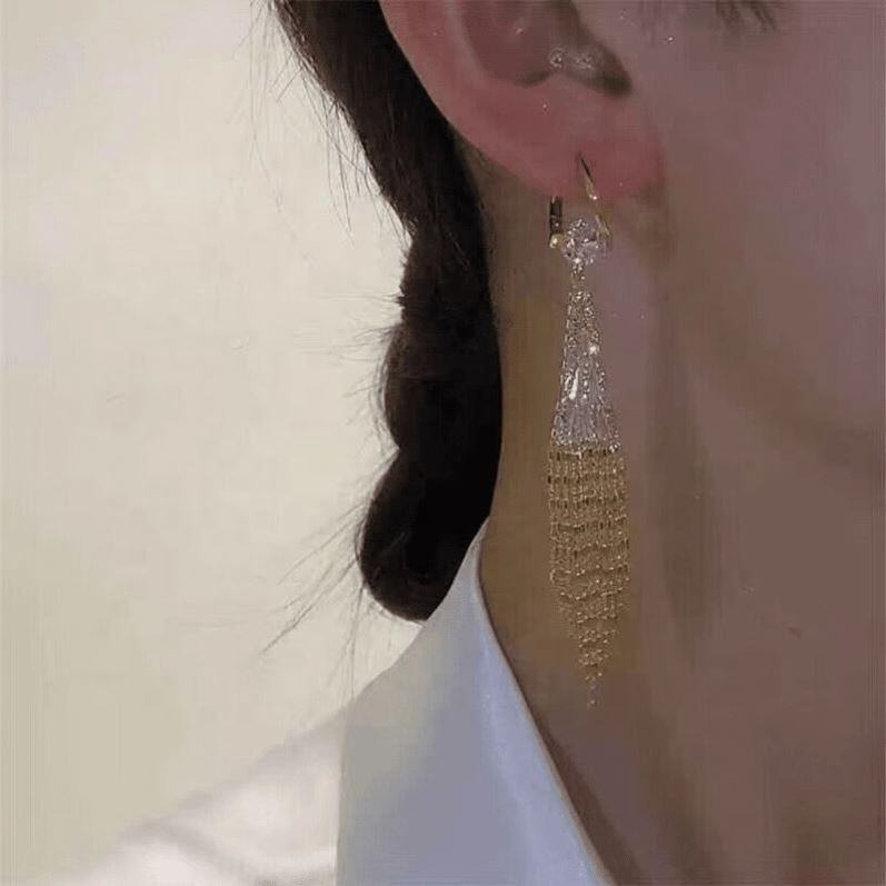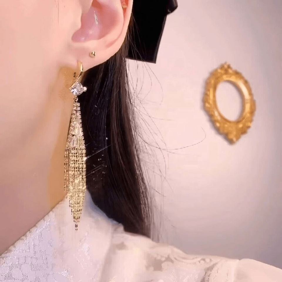 Craze Love Luxury Geometric Silver Plated Stud Earrings Long Tassel Sparkling Wheat Trendy Zircon Anniversary Party Pearl