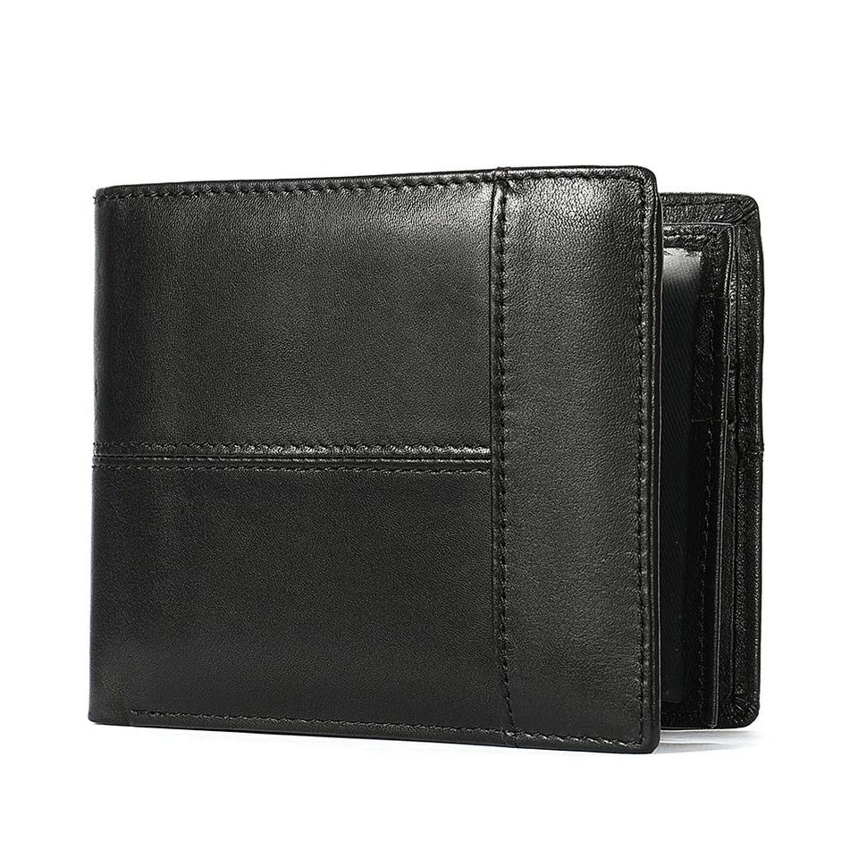 กระเป๋าสตางค์ของผู้ชายหนังแท้แบบพับได้โลโก้ออกแบบได้ตามต้องการแบบเรียบง่ายบางเฉียบ