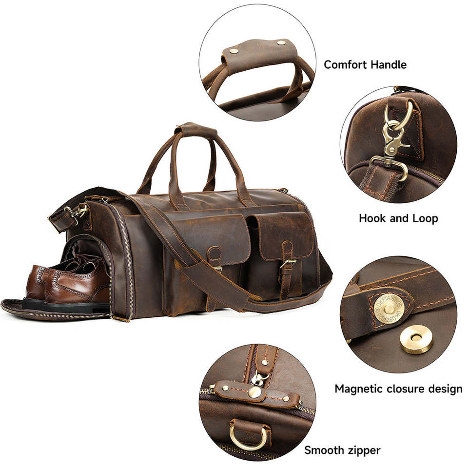กระเป๋าหนังเครซีฮอร์สสำหรับผู้ชายกระเป๋าเดินทางสำหรับใส่รองเท้ามีช่องเก็บเสื้อผ้ากระเป๋าทรงดัฟเฟิลกระเป๋าเดินทางหนังแท้