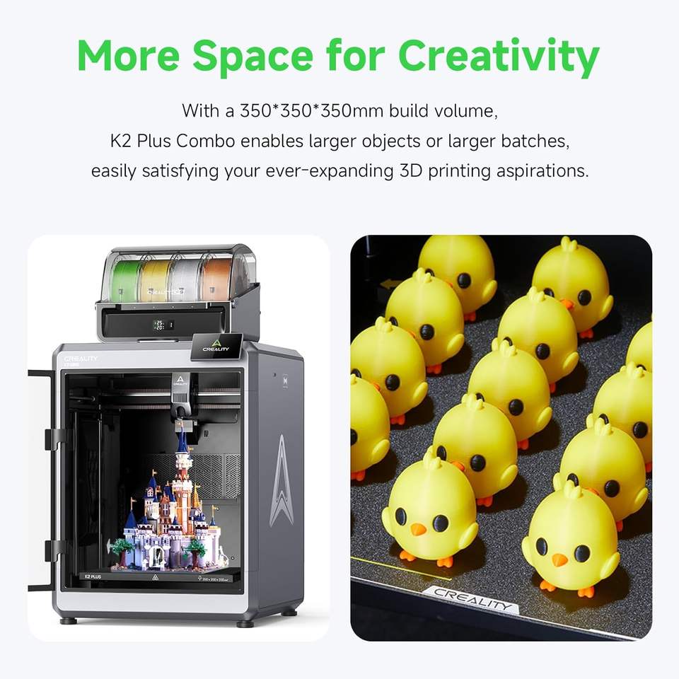 เครื่องพิมพ์สามมิติ K2 Plus 350x350x350 มม. FDM หลายสี ความเร็วสูง ระบบ AI คู่ พร้อมกระจกนิรภัยแบบร้อน รองรับเส้นพลาสติก PLA ปลั๊กแบบ EU