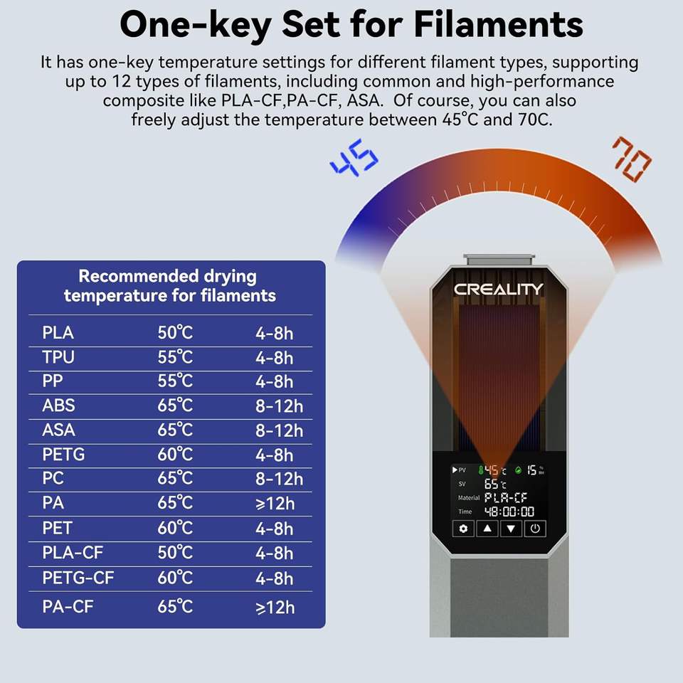 Creality เครื่องอบแห้งเส้นใยอวกาศ1.75มม., เครื่องอบแห้งเส้นใยความร้อน360เครื่องพิมพ์3D เทอร์โมพลาสติก