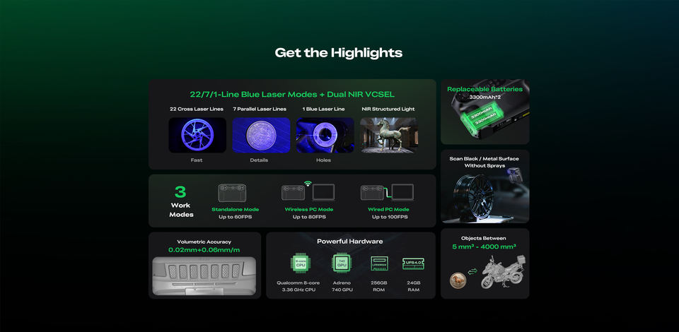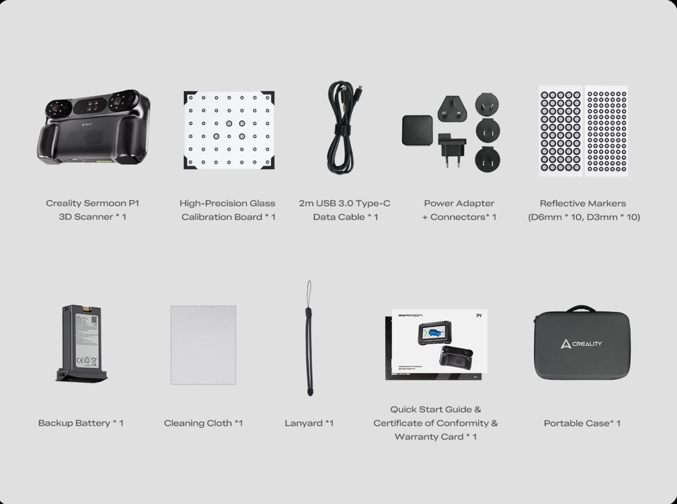เครื่องสแกน 3 มิติ Creality Sermo P1 แบบออลอินวัน ระดับมืออาชีพ พร้อมโปรเซสเซอร์ประสิทธิภาพสูง ระบบสแกนด้วยเลเซอร์หลายเส้นสีน้ำเงิน