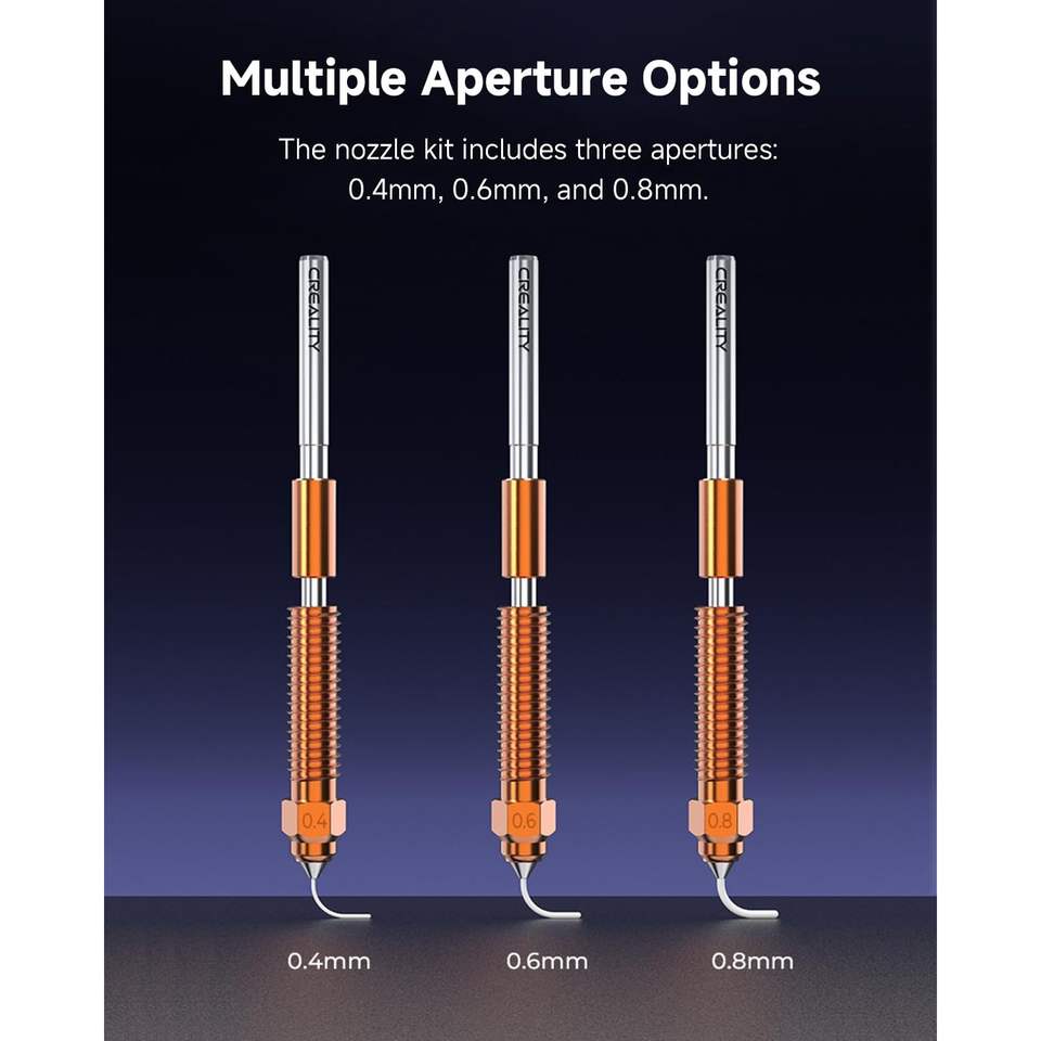 ชุดหัวฉีดเปลี่ยนเร็ว Creality Unicorn ขนาด 0.4 มม. 0.6 มม. 0.8 มม. ผลิตจากทองแดงอัลลอยด์ อุปกรณ์เสริมสำหรับเครื่องพิมพ์ 3 มิติ รุ่น 500010-04/500010-06/500010-08