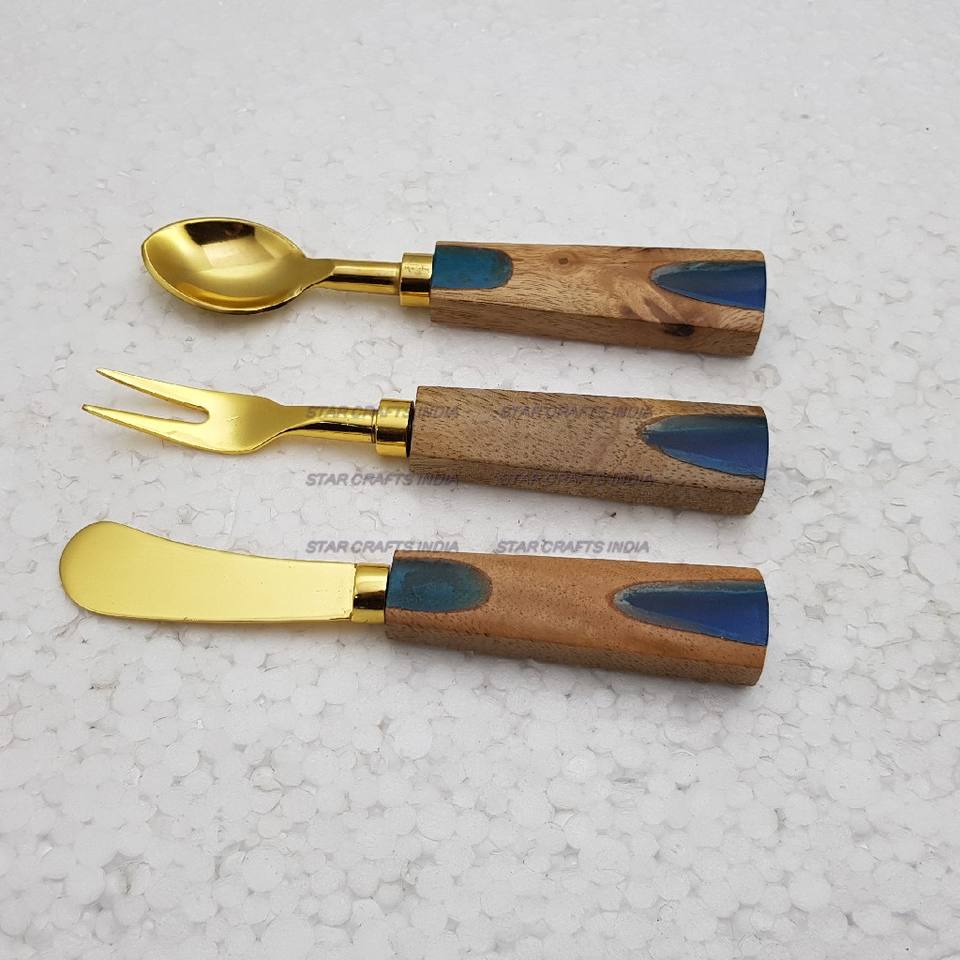 ชุดเครื่องใช้บนโต๊ะอาหารสแตนเลสมีดส้อมพร้อมใบมีดสีทองทำจากไม้ครีมช้อนที่เหมาะกับเทศกาลคริสต์มาสแบบ304สง่างาม