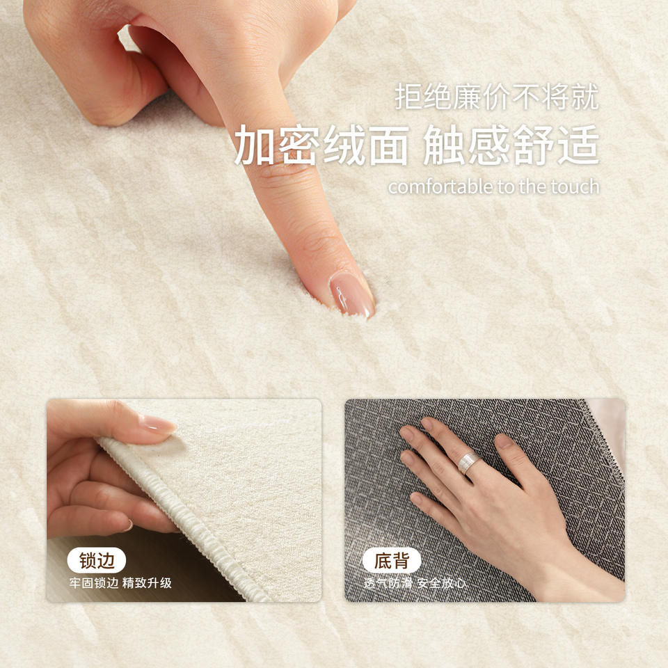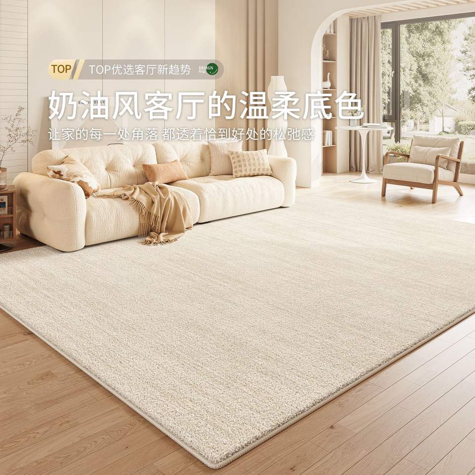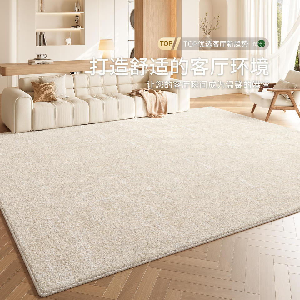 พรมโพลีเอสเตอร์สีครีมลายเรียบ รูปทรงสี่เหลี่ยมผืนผ้า ซักได้ ป้องกันรอยขีดข่วน ทนทานต่อการสึกหรอ เหมาะสำหรับบ้าน ห้องนั่งเล่น ห้องนอน