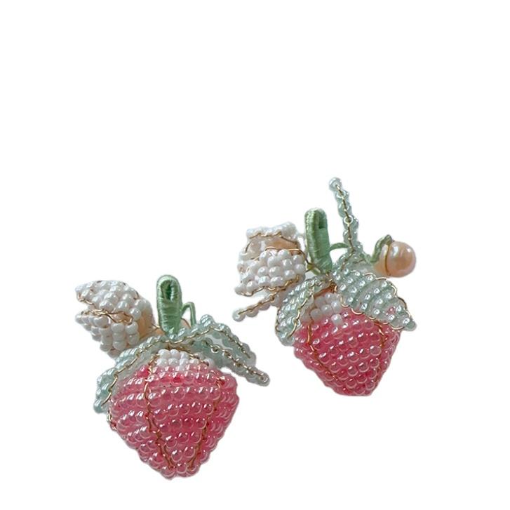 ต่างหูคริสตัลสีครีมต่างหูรูปสตรอเบอร์รี่สีชมพูอ่อนเครื่องประดับหรูหราน้ำหนักเบา