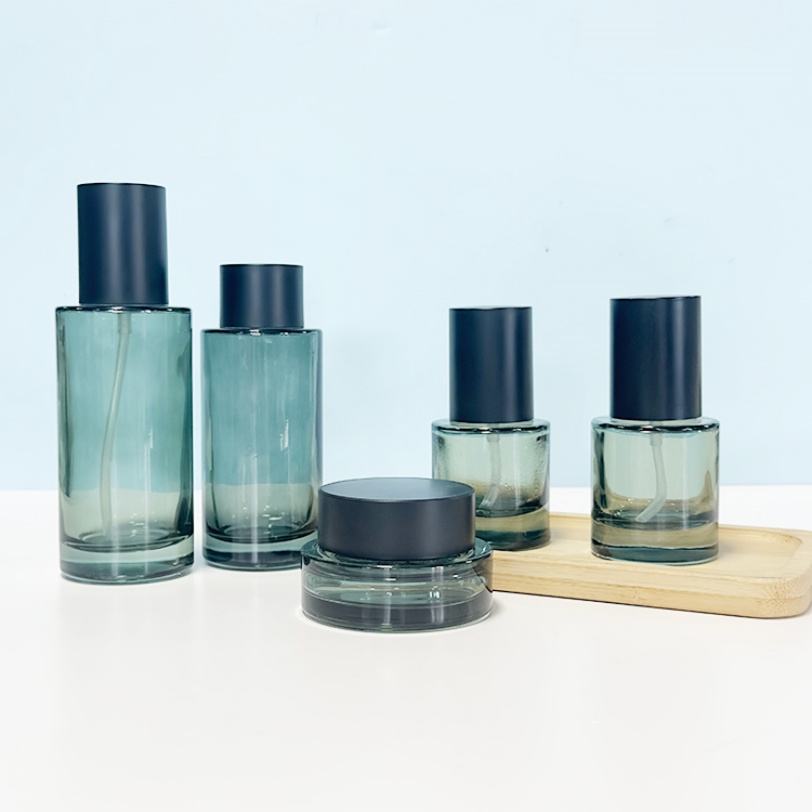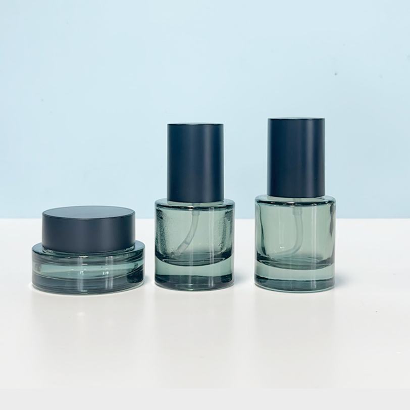 Cream Jar Toner Lotion Essence Glass Bottle Cap Cosmetic Jar Cylinder Thick Glass Luxury Matt Black Skincare Packaging 30g 50g
