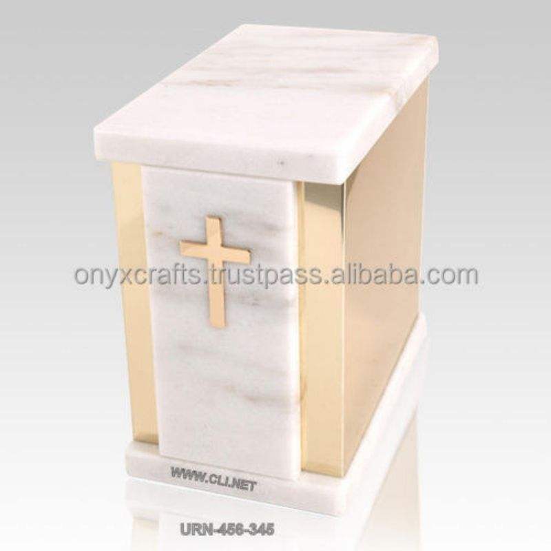 โถงานศพครีมหินอ่อนโอนิกซ์ดีไซน์ตามสั่งสไตล์ยุโรปผู้ใหญ่เงาวาวทรงลูกบาศก์ขัดเงาสีธรรมชาติเป็นมิตรกับสิ่งแวดล้อม