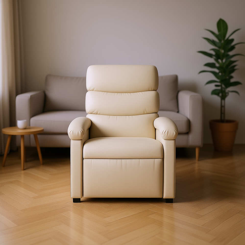 เก้าอี้ปรับเอนหนัง PU พนักพิงสูง แบบปรับด้วยมือ ดีไซน์ร่วมสมัย เฟอร์นิเจอร์ห้องนั่งเล่น