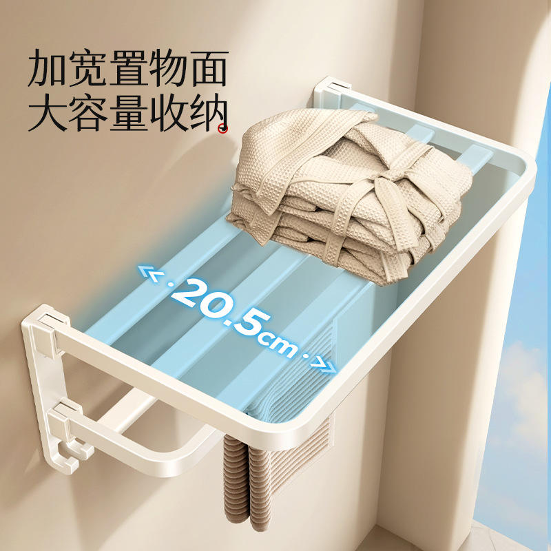 ราวแขวนผ้าขนหนูสีขาวครีม ขนาด 50 ซม. [รุ่นอัปเกรด พับได้สองด้าน]