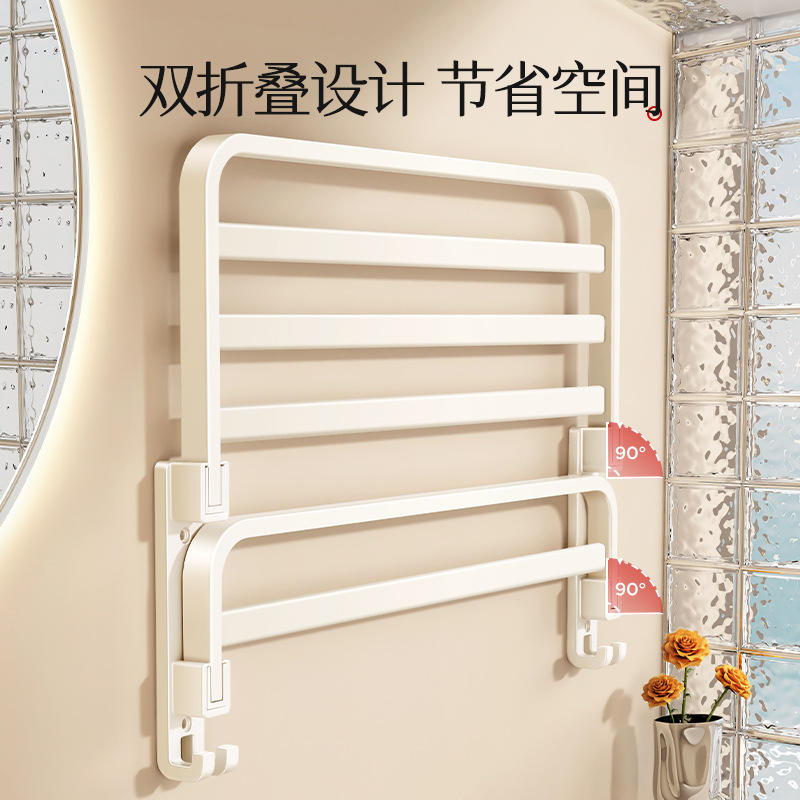 ราวแขวนผ้าขนหนูสีขาวครีม ขนาด 60 ซม. [รุ่นอัปเกรด พับได้สองด้าน]