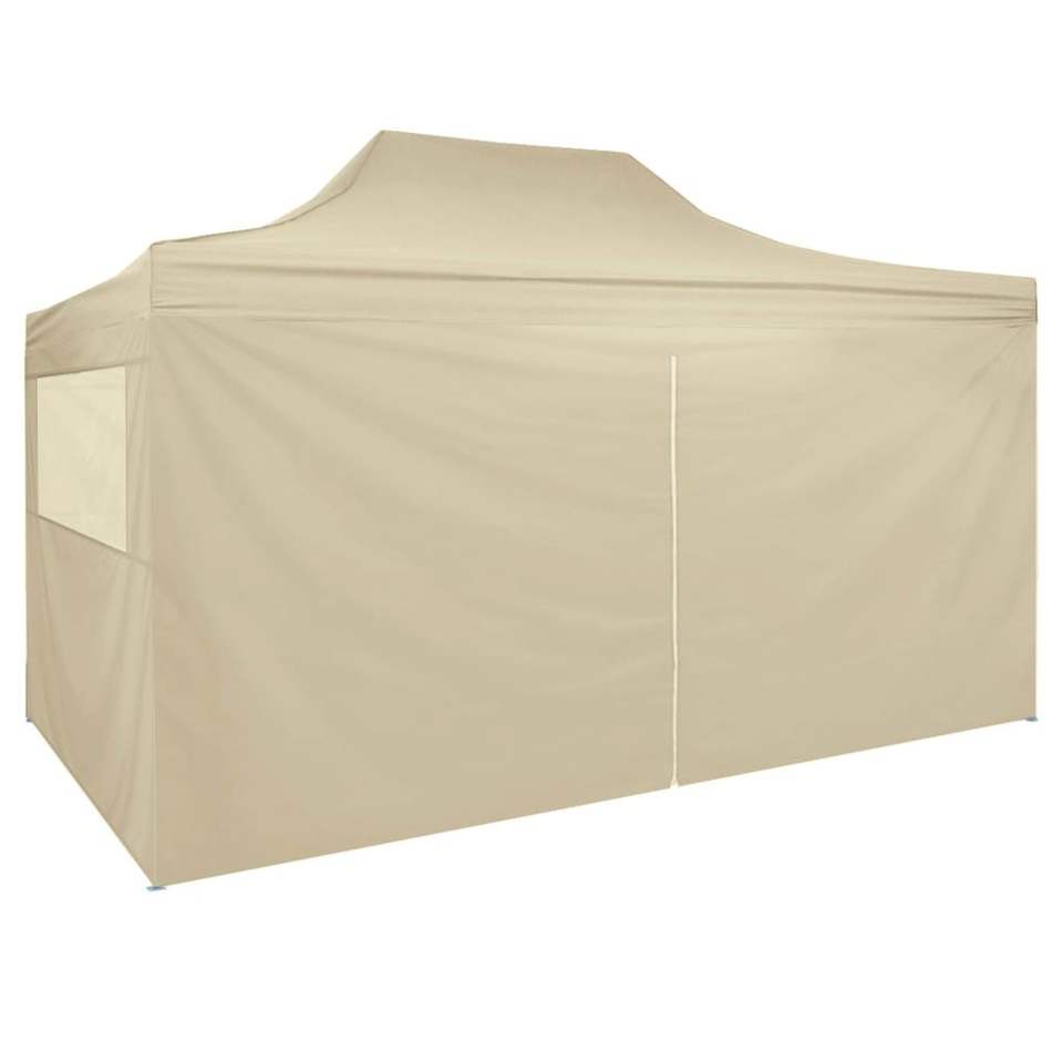 เต็นท์พับได้สีครีมขาว ขนาด 9.8'x14.8' พร้อมผนังด้านข้าง 4 ด้าน สำหรับใช้งานกลางแจ้งในฤดูร้อน
