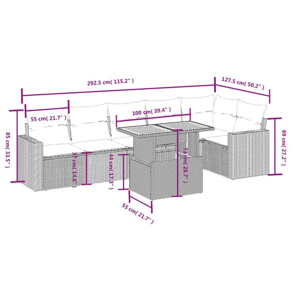 ชุดโซฟาหวายสีขาวครีมและดำ พร้อมโต๊ะ 6 ที่นั่ง เฟอร์นิเจอร์กลางแจ้ง ดีไซน์ร่วมสมัย