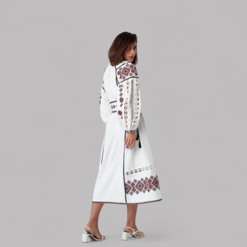 ชุดเดรสมิดิปักลายสีครีมสำหรับผู้หญิงสไตล์โบโฮสำหรับงานแต่งงานสไตล์พื้นบ้านธรรมชาติแบบชนบทไซส์ M L ซักได้สำหรับชาวบ้าน