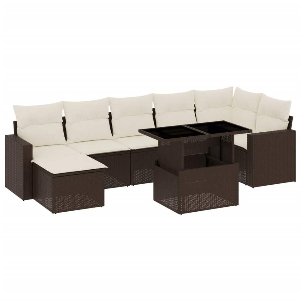 ชุดโซฟาสวนสีครีมขาวและสีน้ำตาล